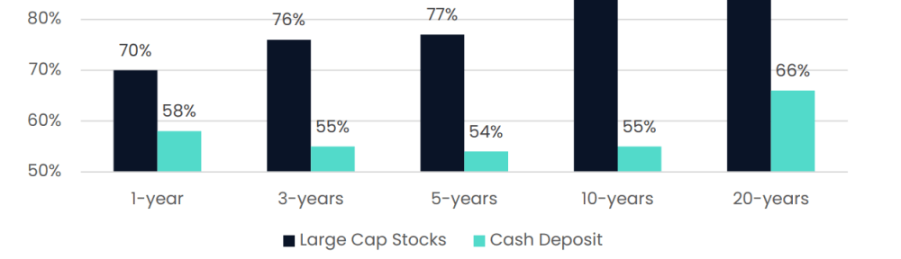 When you put your money in a fixed deposit, you will only gain the guaranteed amount, never any more. Whilst some see this as a good thing, in periods of high inflation (like over the past couple of years), your cash is losing spending power. And inflation is a problem that will always be there; it is not something we can ignore, and historically bank deposits have not battled inflation in comparison to equities.