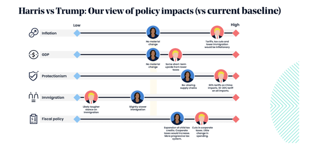 •Trump’s policy around trade tariffs, tax & immigration would be inflationary.